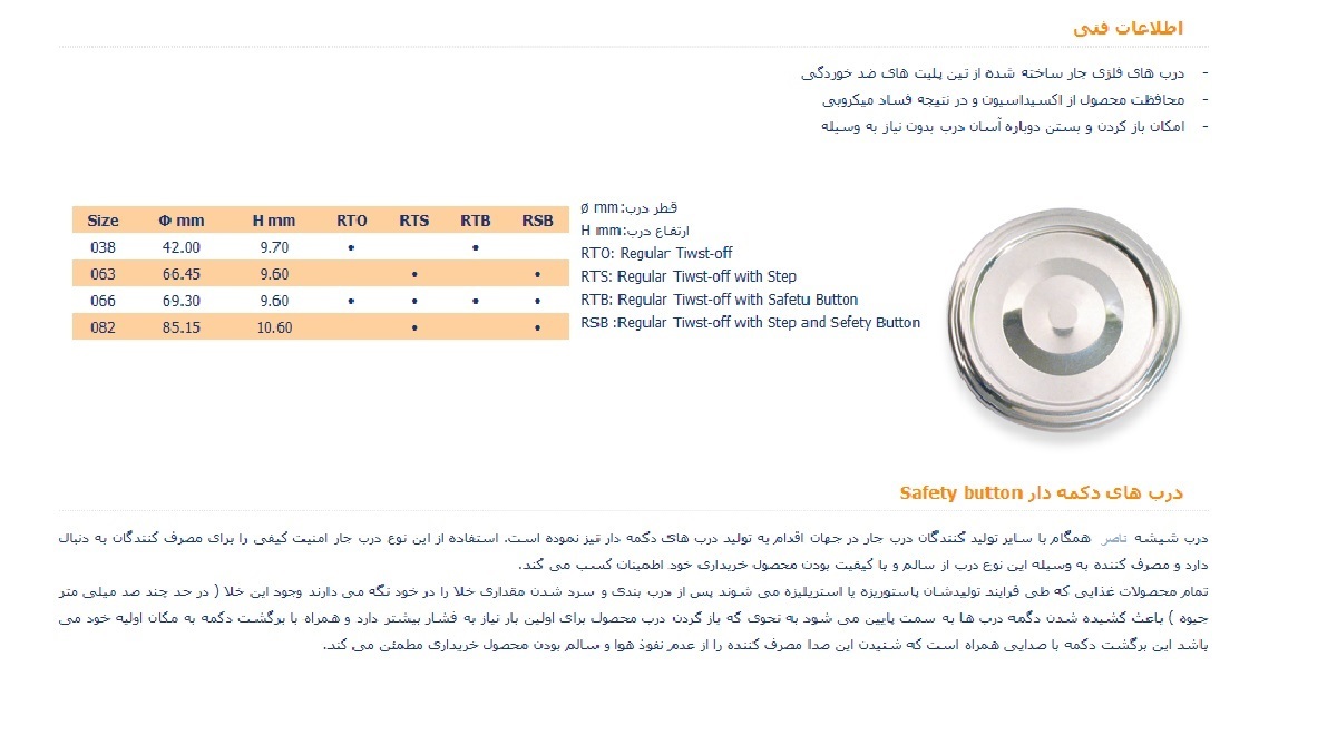 - درب فلزی قابلیت نگهداری خلا محصول غذایی را دارا می باشد.
